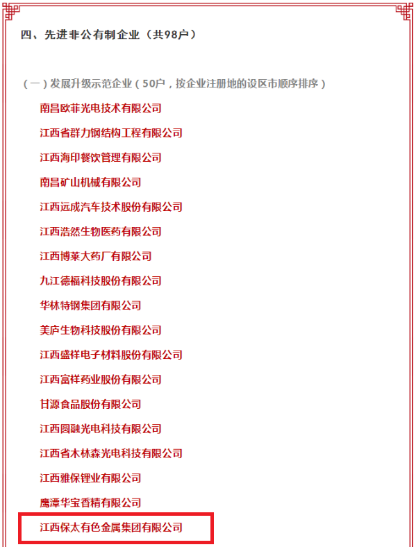 Summary:Baotai Group has won the title of "Advanced Unit of non-public economy in Jiangxi Province"